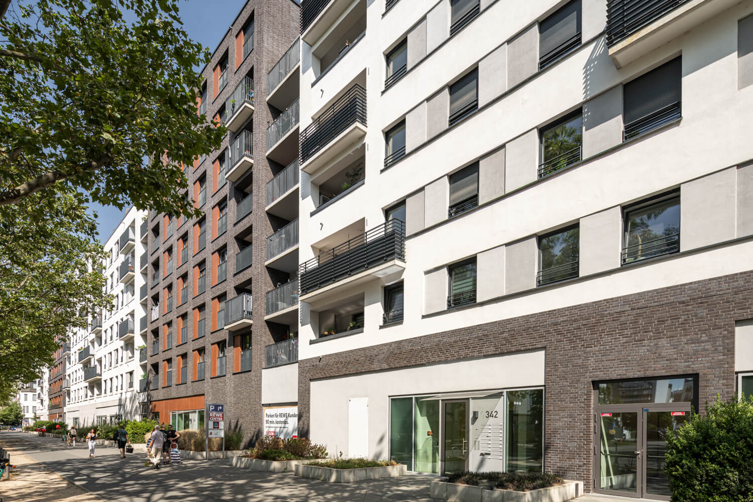ALEA is a residential quarter in a central location on Mainzer Landstraße in Frankfurt's Gallus district. It was completed in 2017 and comprises 86 condominiums and 214 rental flats. To meet any requirements, the residential units represent a balanced mix of one- to five-room flats with living spaces ranging from 36 - 150 m². The residential offer is complemented by retail shops that have moved in on the ground floor. These ensure perfect local supply in the neighbourhood. The proximity to the Galluswarte S-Bahn and bus station ensures good connections to the city centre and the suburbs.