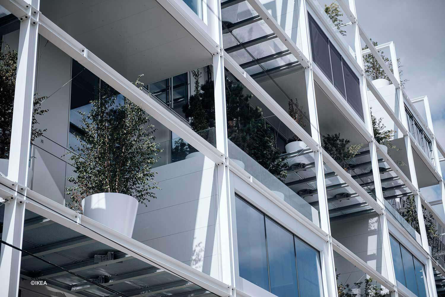 IKEA wants to be a good neighbour.  Therefore the building looks extremely friendly, uncovnetional and urban. The Swedish furniture store uses five of the seven floors. The top two floors is udes by the Hotel Jo & Joe. The building matches the positive image of the furniture store, yet this store is different from all others before. On each level there are open spaces with plants, green facade elements, bird nests, beehives and lots of light. A total of 160 trees provides a pleasant microclimate.