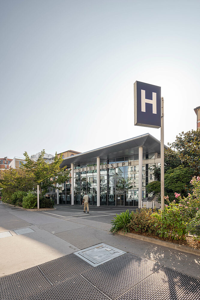 With its location on Rue Losserand in the 14th arrondissement of Paris, the Saint-Joseph hospital complex is characterised by exceptional transport links. The metro line 13, which runs six metres below the street, represents only one of the many existing public transport options. The construction of a new building for the hospital's emergency room, however, confronted everyone involved with an enormous sound problem - precisely because of the existing infrastructure. Because of the already very limited space due to the dense building development, the extension measure could not be realised anywhere else than in the basement and on the ground floor, directly at the edge of the traffic routes. This meant that, from a planning point of view, there was no other option than to provide the staff rooms less than three metres next to the metro tunnel.